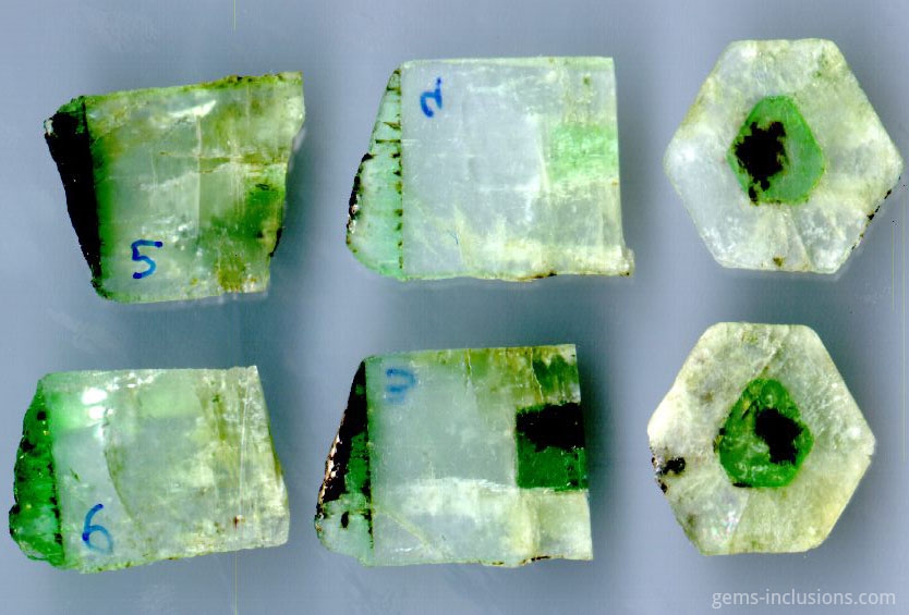 Inclusions in beryls – All varieties of beryls here, excluding emeralds. Direct link to Inclusions in emeralds.