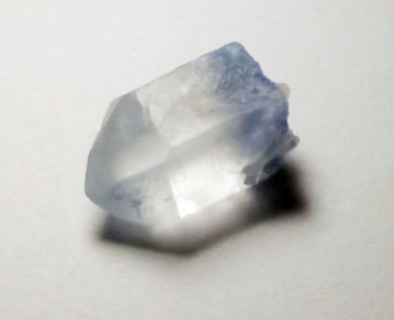 Group of blue dumortierite needles as inclusions, covering the base of clean colorless quarz crystal.